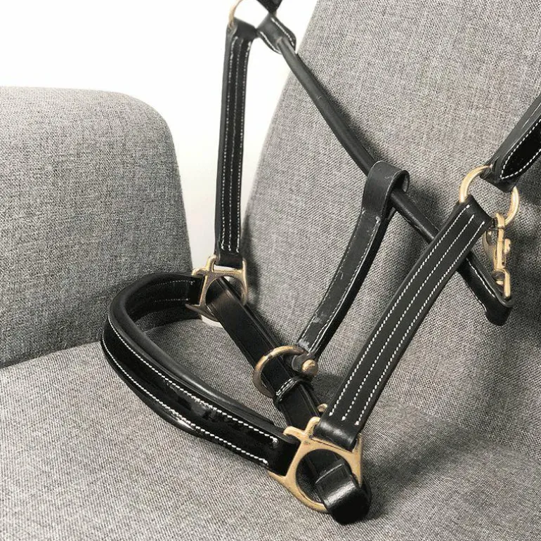 - Têtière et muserolle en cuir vernis 2 boucles + 1 mousqueton