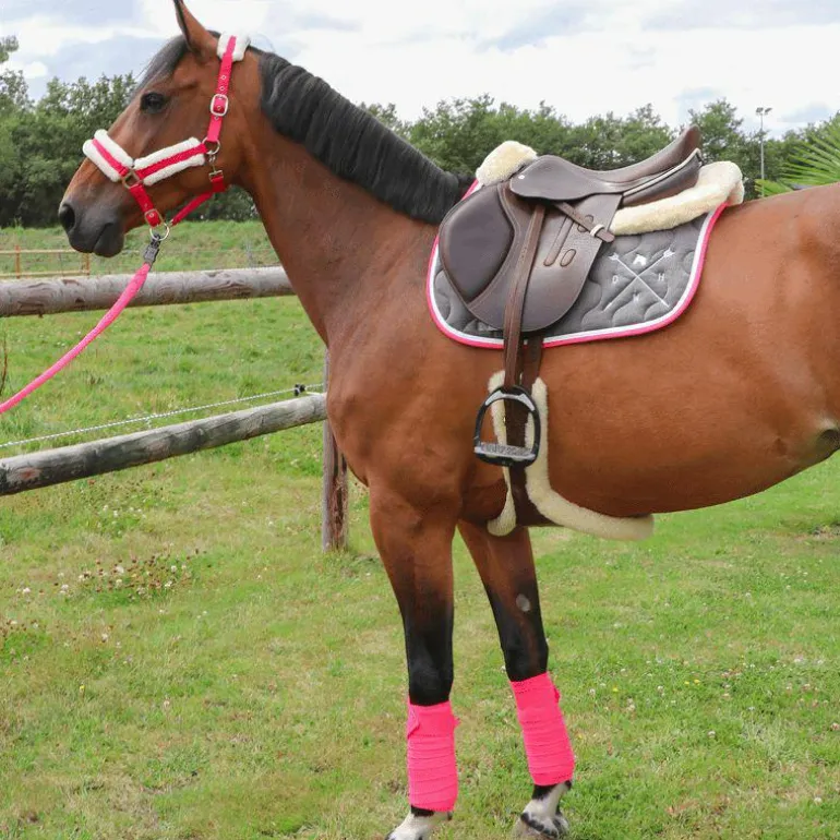 - Tapis de selle Gris chiné/ vernis blanc/ bordure fushia