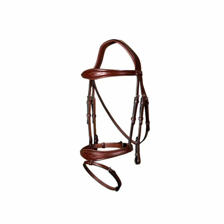 • Frontal et muserolle élargis au centre, légèrement bombés avec surpiqûre décorative