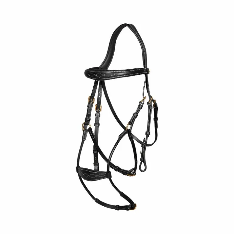 • Muserolle qui limite la pression sur les zones sensibles tout en garantissant un contact stable et homogène, idéale pour les chevaux qui nécessitent confort et précision dans le travail