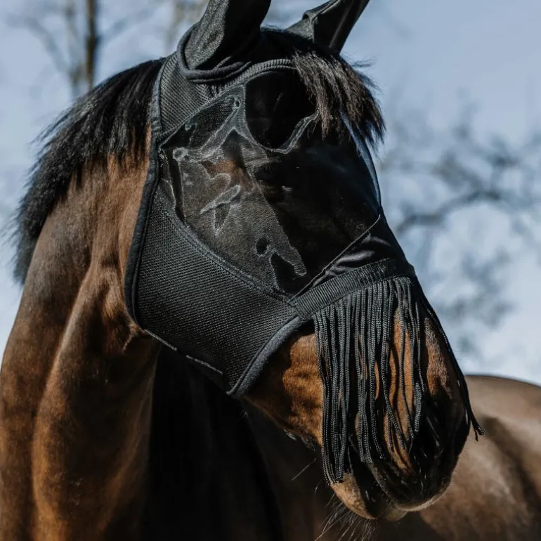 Equithème – Masque anti-mouches et anti-UV Franges noir