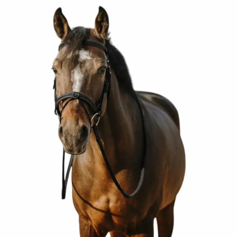 • Têtière, frontal et muserolle doublés de clarino (cuir synthétique)