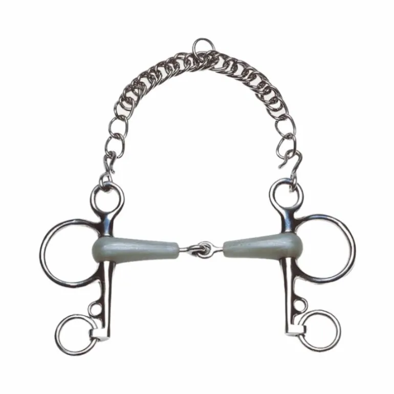 Le pelham peut être utilisé avec 2 ou 4 rênes. De même, il est possible de l’utiliser sans gourmette pour adoucir son action sur la bouche.