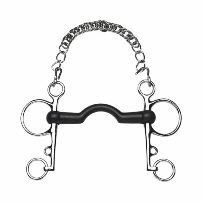 Le pelham peut être utilisé avec 2 ou 4 rênes. De même, il est possible de l’utiliser sans gourmette pour adoucir son action sur la bouche.