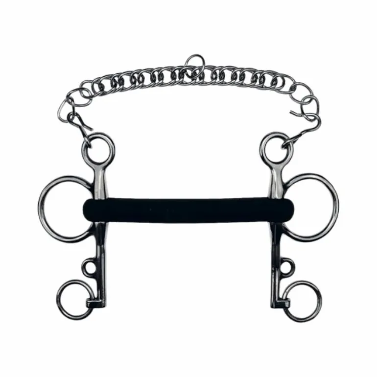 Le pelham peut être utilisé avec 2 ou 4 rênes. De même, il est possible de l’utiliser sans gourmette pour adoucir son action sur la bouche.