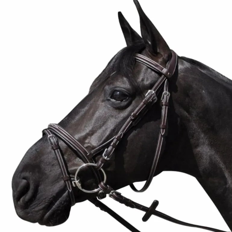 - Frontal et muserolle : bombés 1/2 rond, doublés et surpiqués