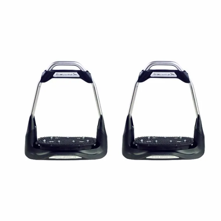 Connue pour son innovation et son expertise, Freejump propose des étriers de haute qualité qui allient performance, confort et sécurité. Les étriers Freejump se distinguent par leur système de dégagement rapide unique, permettant au cavalier de libérer facilement son pied en cas de chute ou d’urgence. Ce mécanisme innovant offre une tranquillité d’esprit et une protection supplémentaire lors de la pratique équestre. Les étriers Freejump sont conçus avec une plateforme large et antidérapante, offrant une excellente adhérence et une stabilité optimale pendant l’équitation. De plus, ils intègrent un système d’amortissement des chocs pour réduire la pression sur les articulations du cavalier. Freejump propose également une variété de modèles et de designs pour répondre aux préférences individuelles des cavaliers.