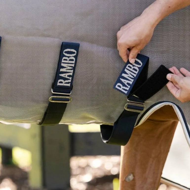 • Système Rambo Protector Fieldsafe permettant d’offrir une protection supplémentaire : trois sursangles croisées avec le système Rambo Safety Surcingle permettant de résister à une pression de 100kg et de rompre au-delà de ce poids