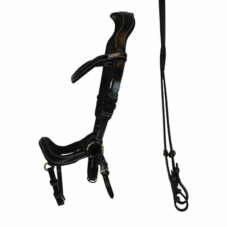 - Têtière anatomique avec un bon dégagement des oreilles et une très large surface sur les premières cervicales