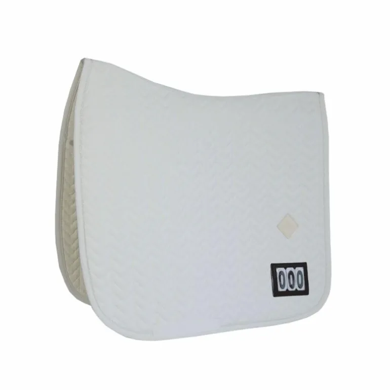 - Ce tapis de selle au matelassage Fishbone est fabriqué dans un matériau respirant (43% de nylon, 43% de polyester et 14% de spandex) et est dès lors, parfait pour la compétition ou l’entrainement à la maison. Vous pouvez d’ailleurs remplacer le patch avec les numéros par un patch au Logo Kentucky