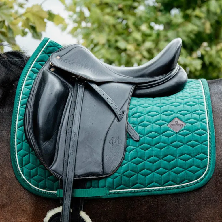 - Le tapis de dressage Velvet très élégant avec son effet velours et son passepoil à double torsion.
