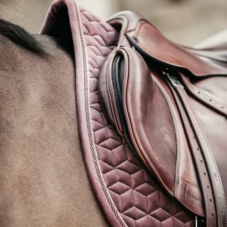 - Le tapis de selle Velvet très élégant avec son effet velours et son passepoil à double torsion.