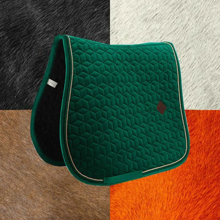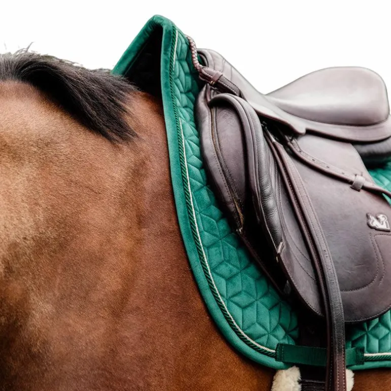 - Le tapis de selle très élégant avec son effet velours et son passepoil à double torsion