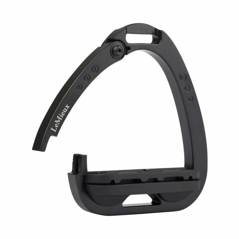 • Bras articulé qui s’ouvre en cas de chute, avec mécanisme de libération adapté aux jeunes cavaliers