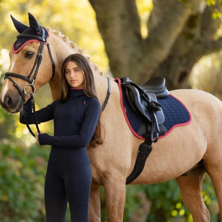 • Tapis de selle Mixte Square suédine marine/ cranberry