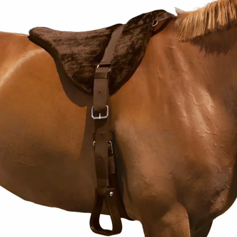 – d’étriers type western en zinc. - Sanglage long par contre-sanglons en polypropylène et sangle courte coton, matelassée, longueur 70 cm. Bouclerie en métal chromé.