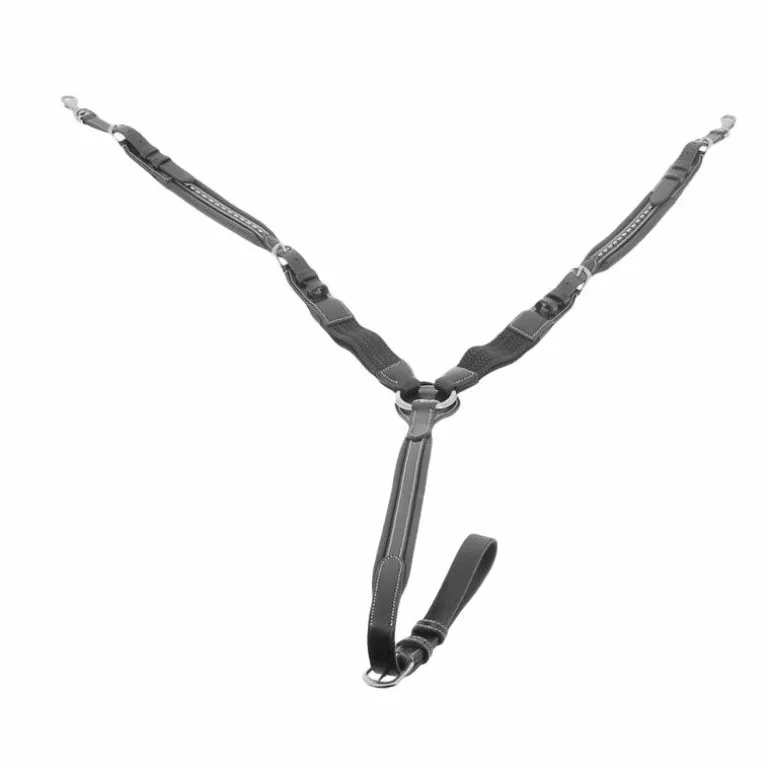 • Le réglage de la partie collier de chasse peut être optimal grâce, notamment, à l’élastique présent au niveau du garrot qui permet de réduire l’espace entre le poitrail et l’attache de la sangle et offrant également un ajustement idéal à votre cheval