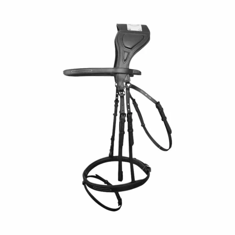• Cuir Italien de grande qualité, bouclerie en acier inoxydable noir, détails en coutures blanches sur le frontal et la muserolle.