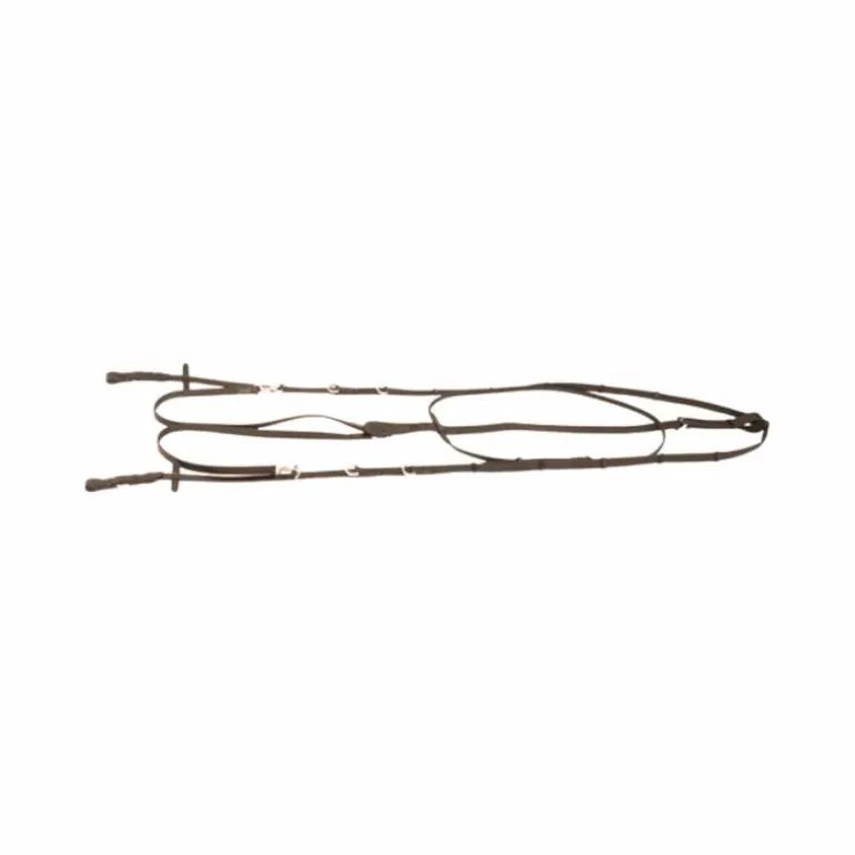 - Il s’agit d’une paire de rênes spécifique avec des D métalliques (3 sur chaque rêne) afin de pouvoir y attacher l’enrênement.