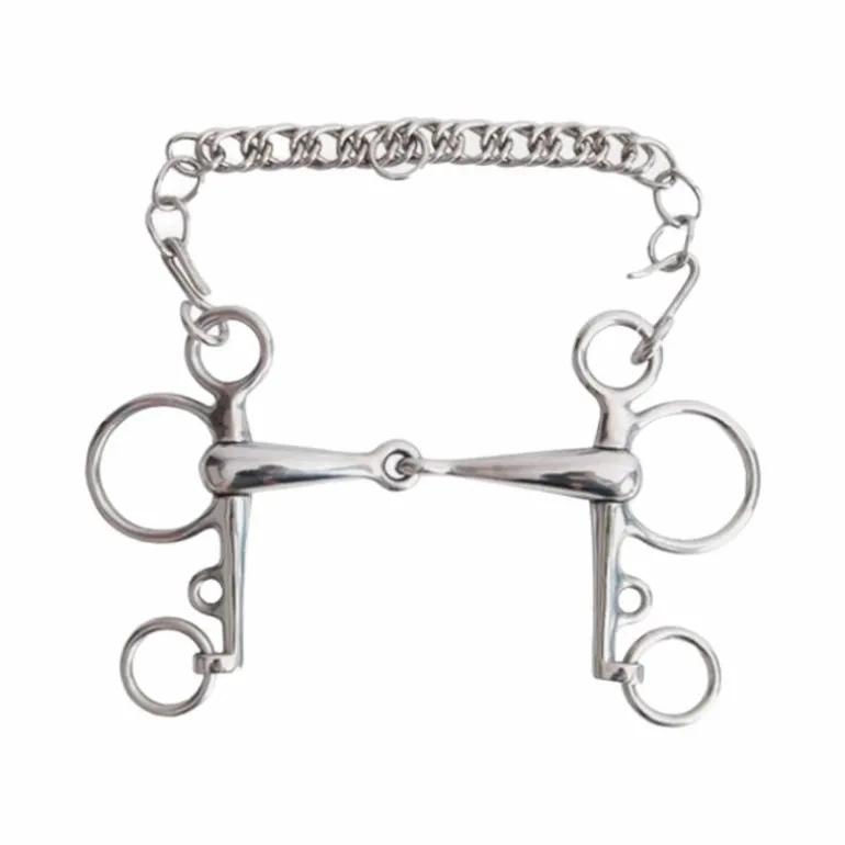 Le pelham peut être utilisé avec 2 ou 4 rênes. De même, il est possible de l’utiliser sans gourmette pour adoucir son action sur la bouche.