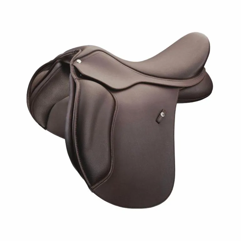 La selle est fabriquée en cuir synthétique Equi-Leather et Equi-Suede, qui offrent l’apparence et la sensation du cuir véritable tout en étant plus faciles à entretenir et plus résistants aux intempéries.