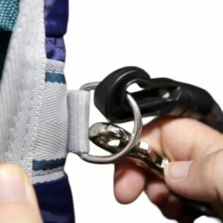 • Mousqueton pour attacher la couverture à un bout et de l’autre un élastique