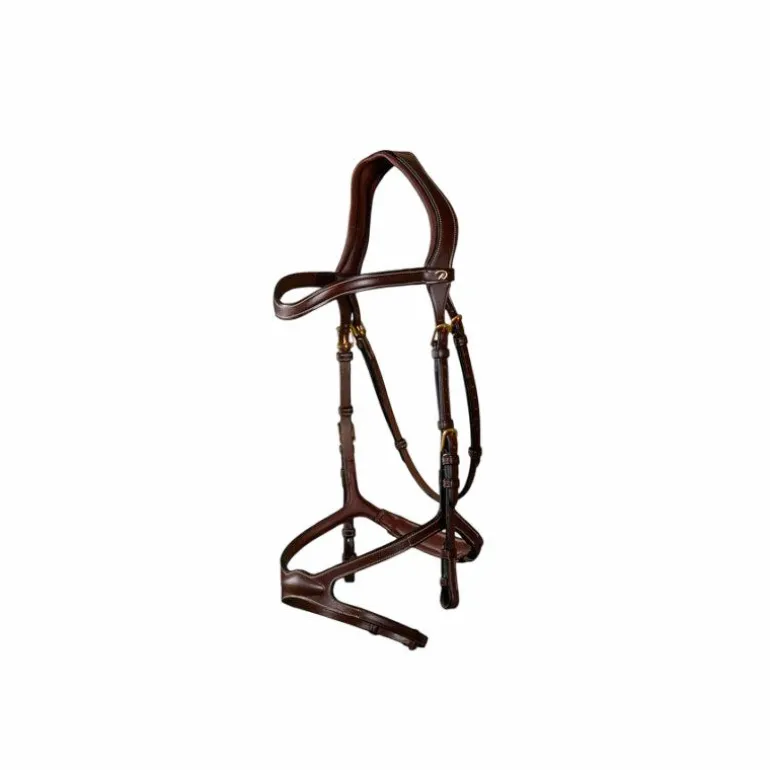 • Têtière dotée d’un unique montant où vient s’attacher le montant de muserolle ainsi que le porte mors