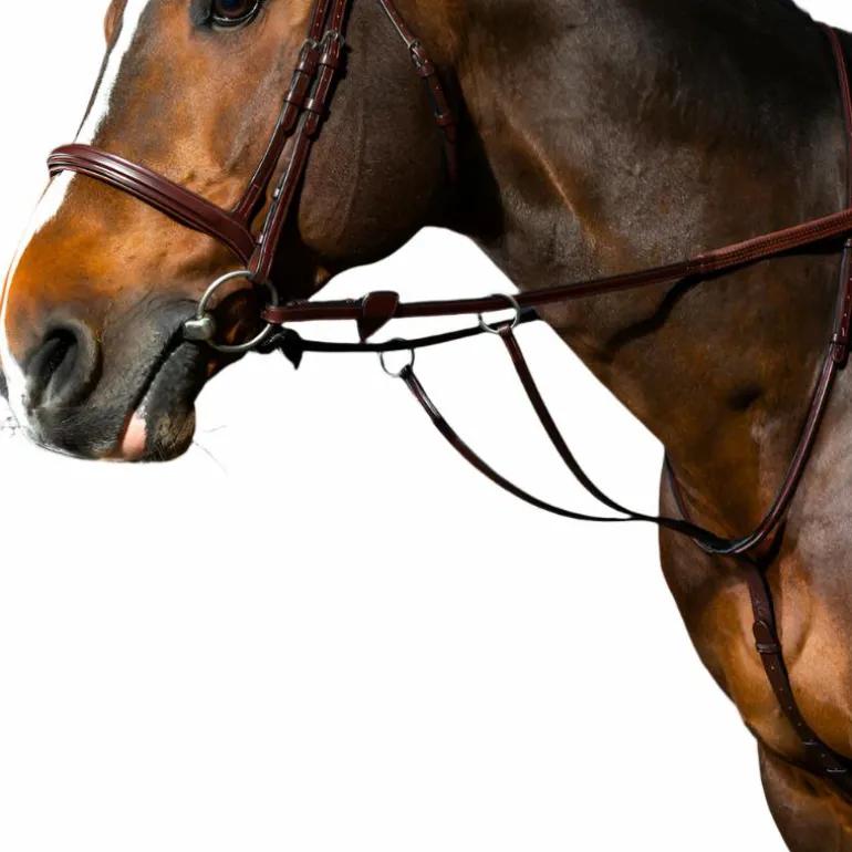 • Martingale à anneaux en cuir bombé carré avec surpiqûre décorative