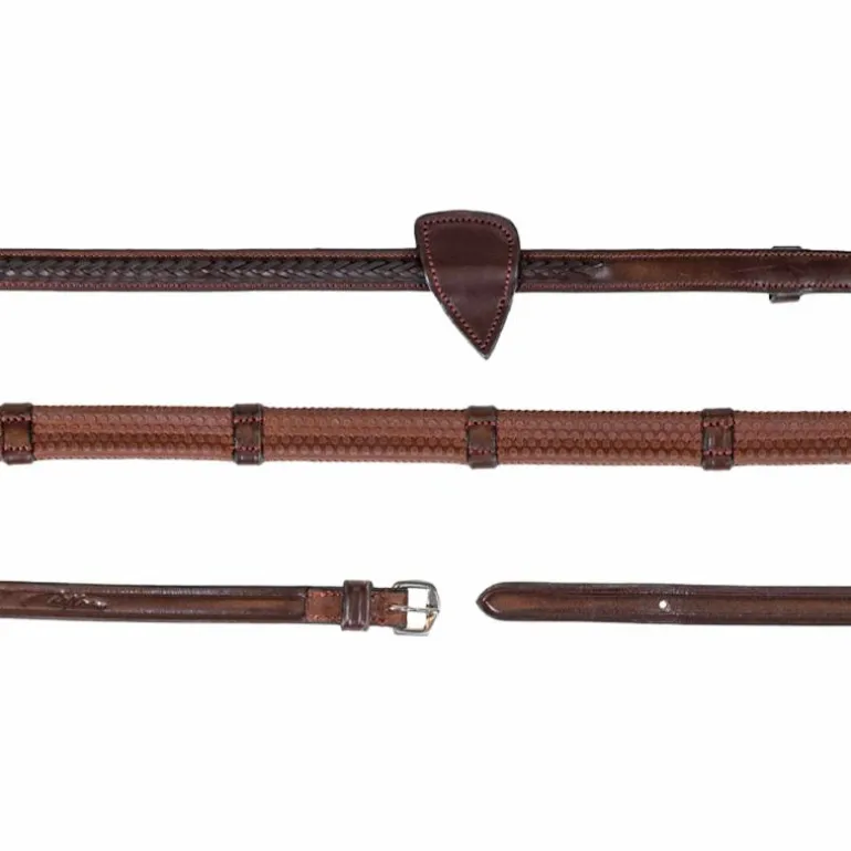 Dyon – Rênes caoutchouc 7 arretoirs tressés New English marron