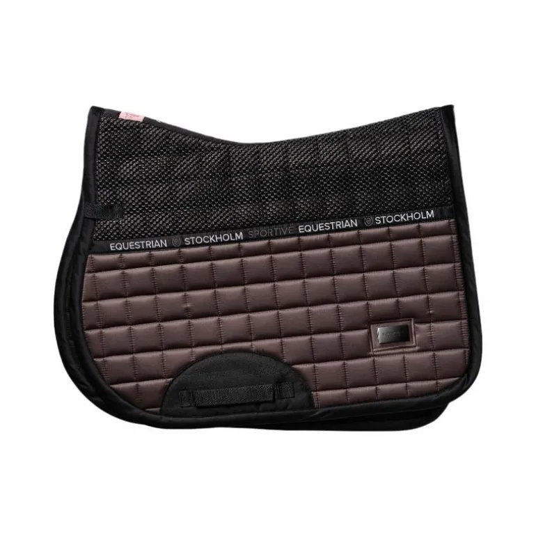 • Tapis de selle sportif marron avec un matelassage carré sur le bas du tapis et d’une maille antidérapante noir sur le haut du tapis pour garantir la fixité de la selle lors de l’utilisation