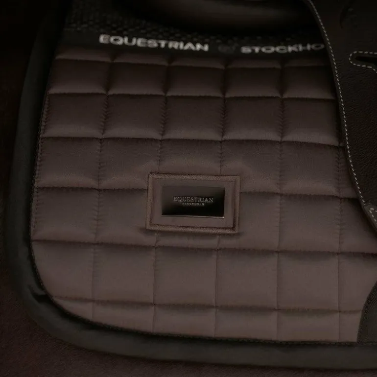 • Logo Equestrian Stockholm en métal noir à l’arrière du tapis