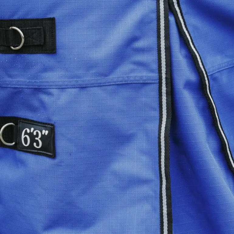 • Fermeture de poitrail par fixation rapide avec renfort par bandes auto-agrippantes et indication de la taille sur le patch en caoutchouc