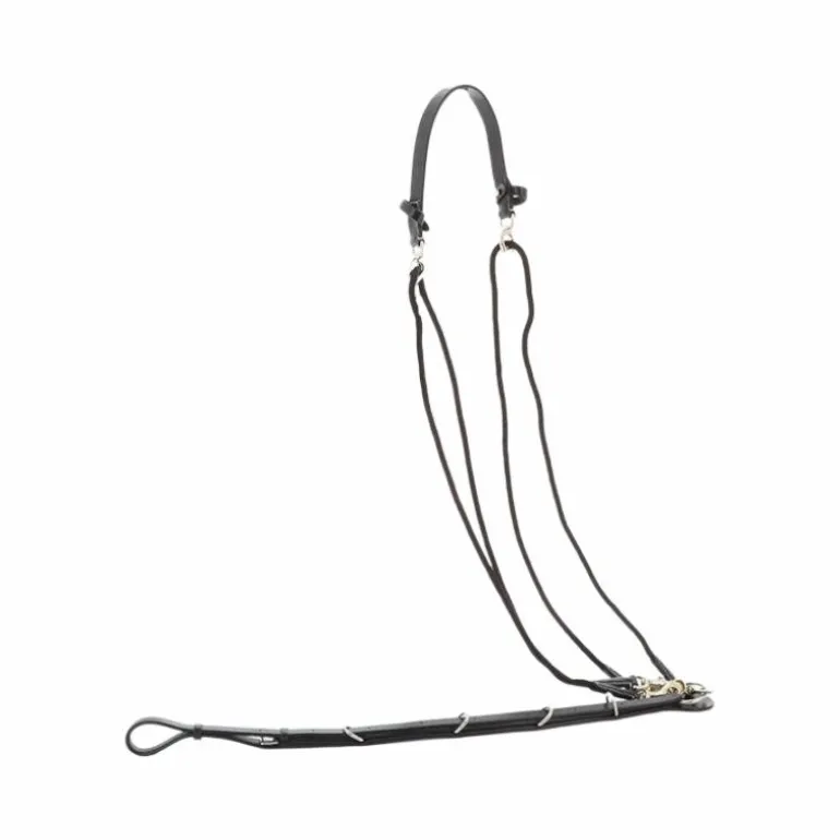 Comme pour tous les enrênements, il est important de ne pas le régler trop court, particulièrement en début de séance, le but n’étant pas d’emprisonner le cheval ce qui provoquerait des défenses mais de fixer un cadre dans lequel le cheval peut se mettre en place librement.