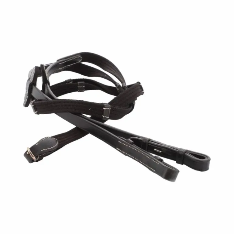 - A crochets, avec 5 arrêtoirs en cuir et surpiqûres blanches.