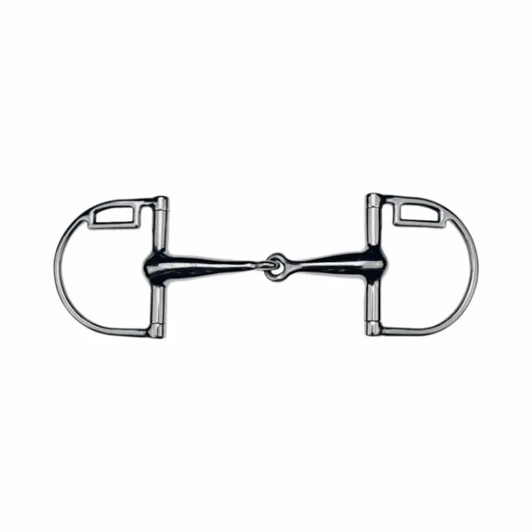 • Le mors Verdun se présente comme un mors de filet classique, mais les anneaux sont en forme de D et ne coulissent pas sur les canons. Comme le mors à aiguille, le Verdun est souvent préconisé pour mieux canaliser les jeunes chevaux.