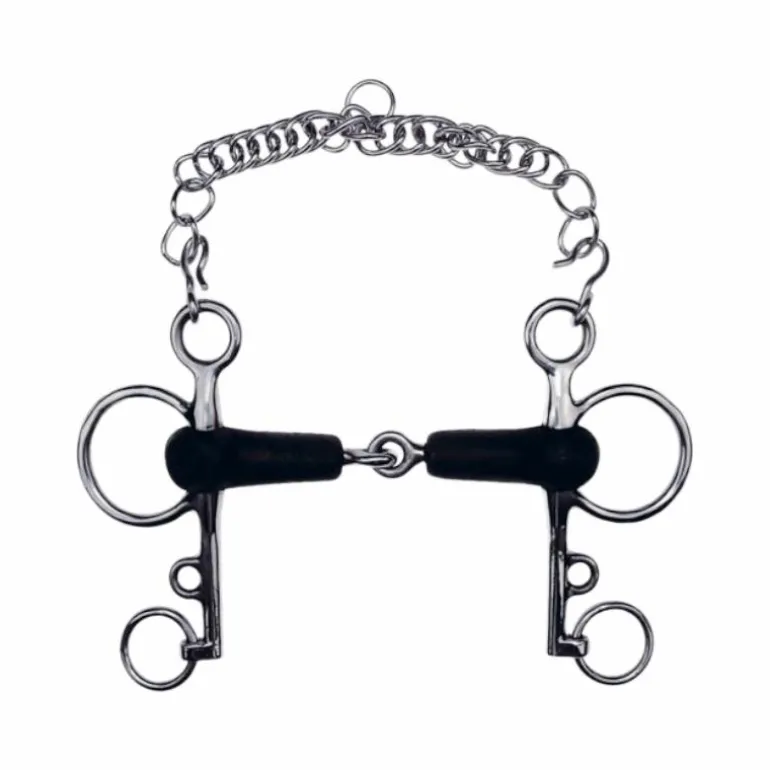 Le pelham peut être utilisé avec 2 ou 4 rênes. De même, il est possible de l’utiliser sans gourmette pour adoucir son action sur la bouche.