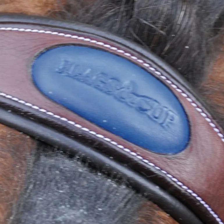 - Têtière anatomique, doublée, embossée cuir bleu estampé F&C