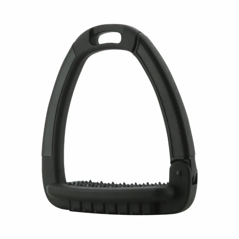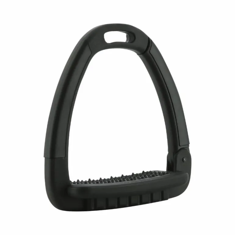 • Semelle de l’étrier anatomique avec une inclinaison à 5° aidant à maintenir le talon du pied vers le bas