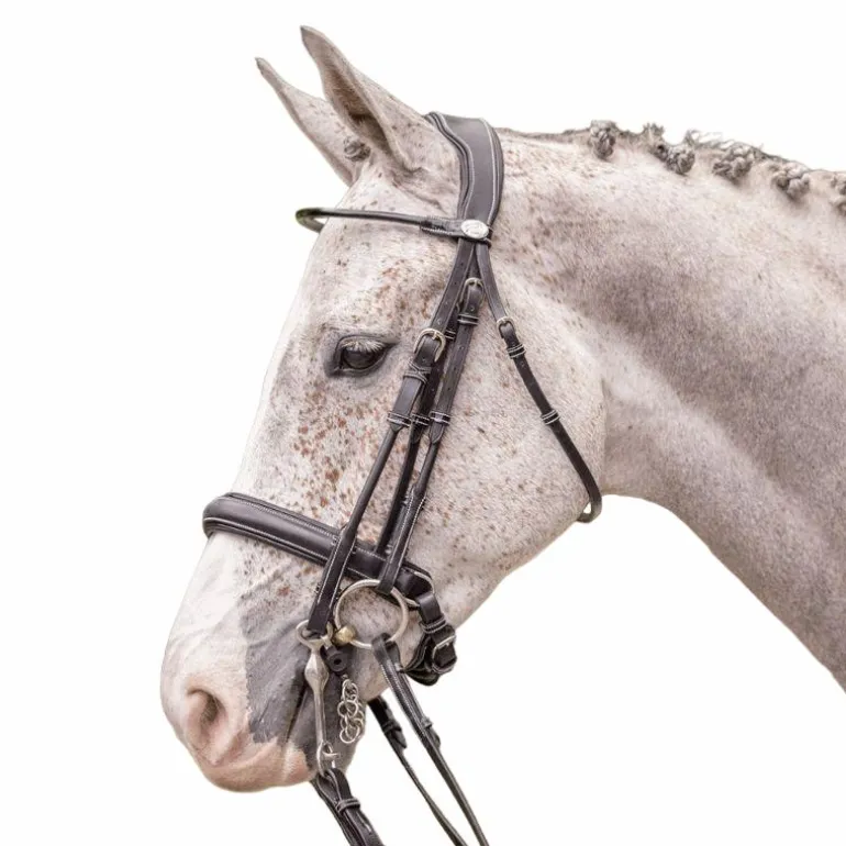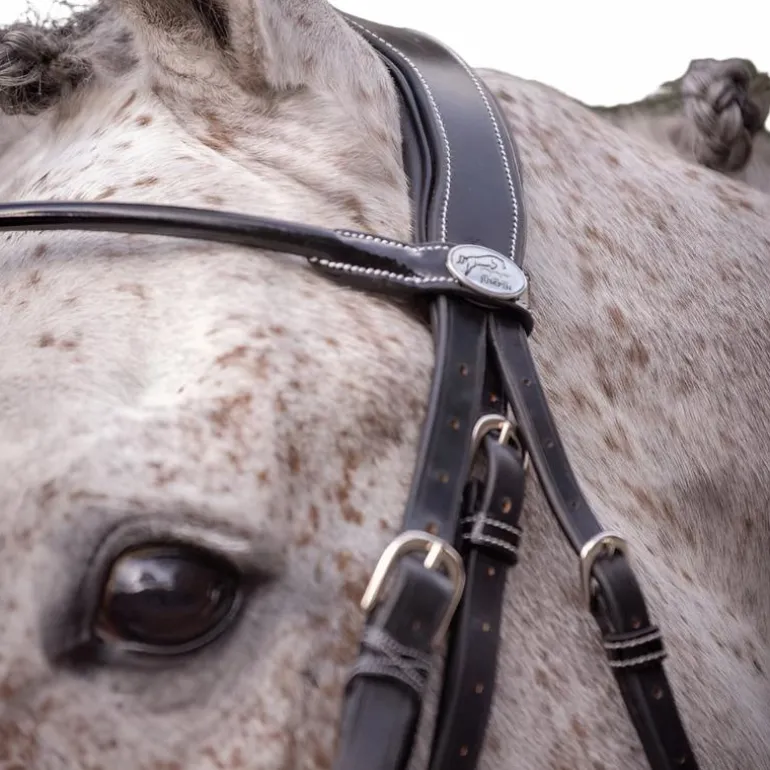 - Bride avec frontal rond verni et muserolle large système pull-back