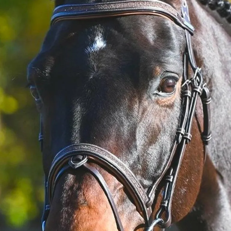 - Le bridon Carat est vendu avec sa paire de rênes. Uniquement disponible en muserolle combinée.