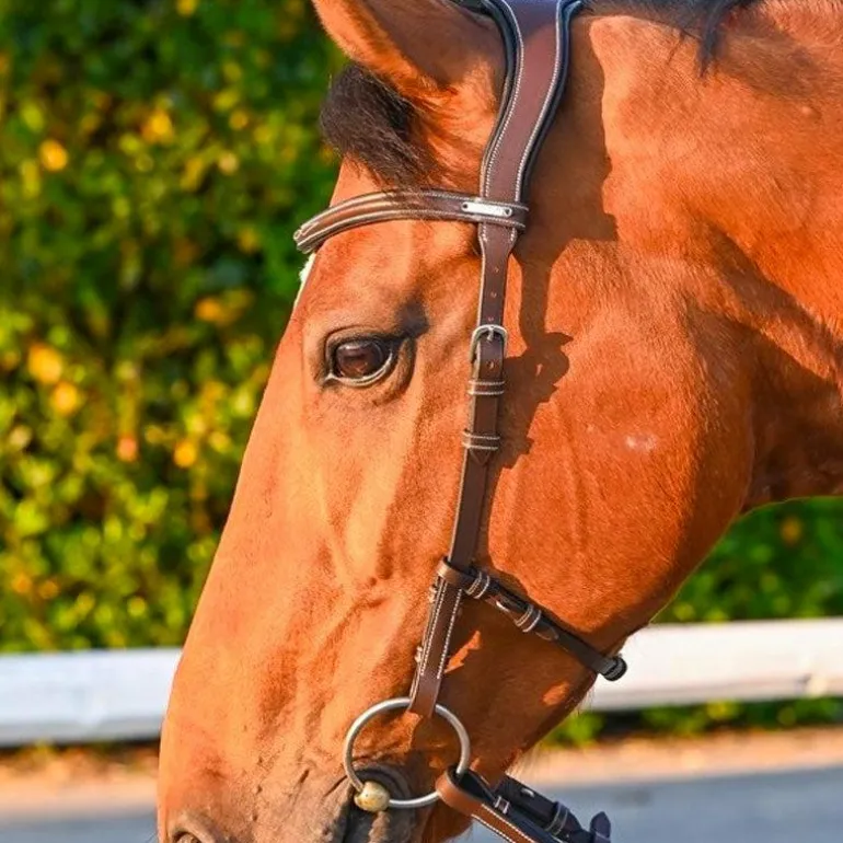 • La têtière est anatomique et confortablement doublée pour apporter plus de confort au cheval.