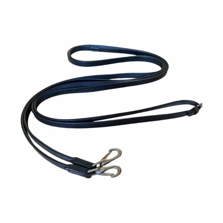 • Deux mousquetons aux extrémités permettant de fixer les rênes à la sangle