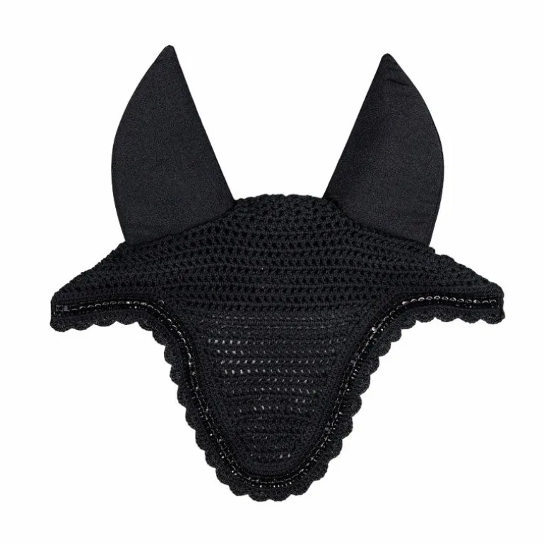 - Il possède un pourtour en strass et perles. Le tissu autour des oreilles est extensible et ajusté. Il protège les oreilles du cheval contre les mouches et le bruit pendant le travail