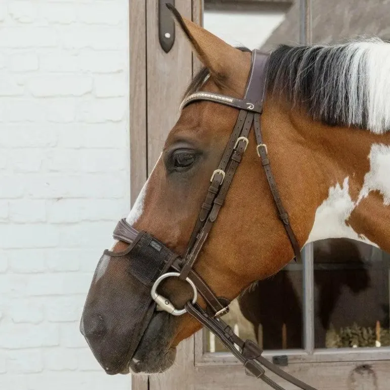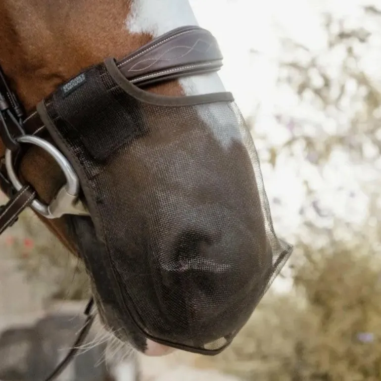 • En maille résistante qui ne laisse passer aucun insecte, tout en restant respirant, il s’attache avec deux velcros à la muserolle du bridon