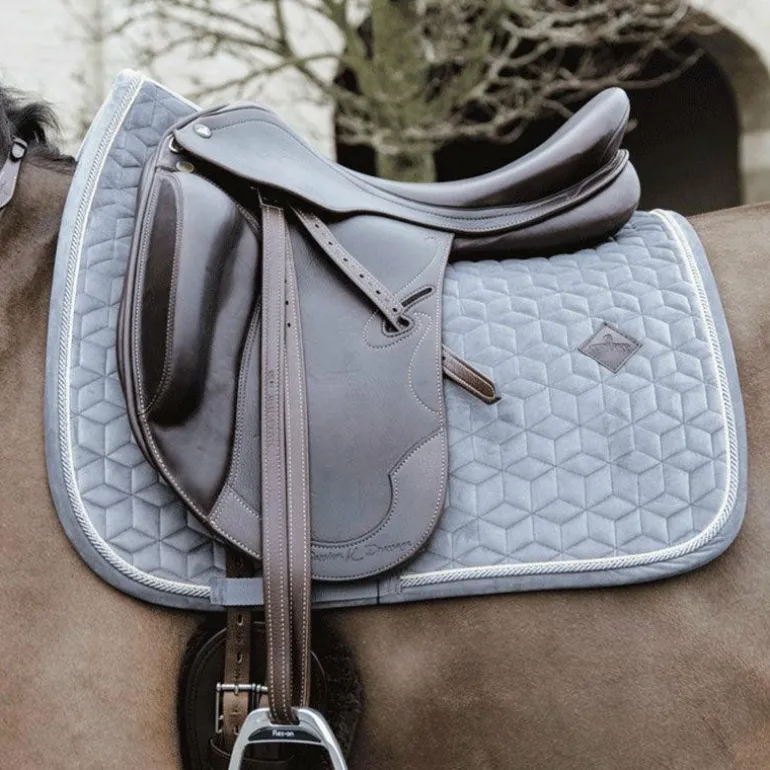- Le tapis de dressage Velvet très élégant avec son effet velours et son passepoil à double torsion.