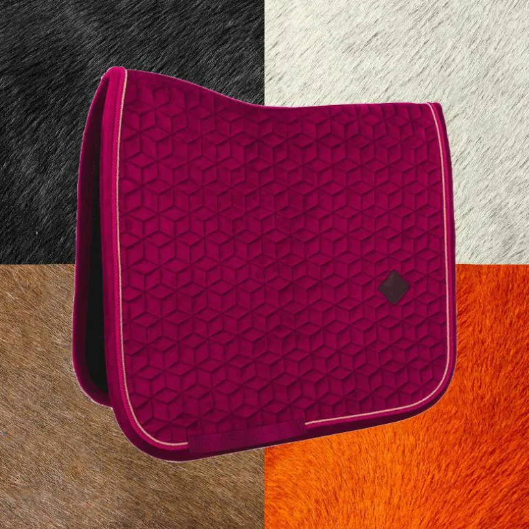 - Le tapis de dressage Velvet très élégant avec son effet velours et son passepoil à double torsion.