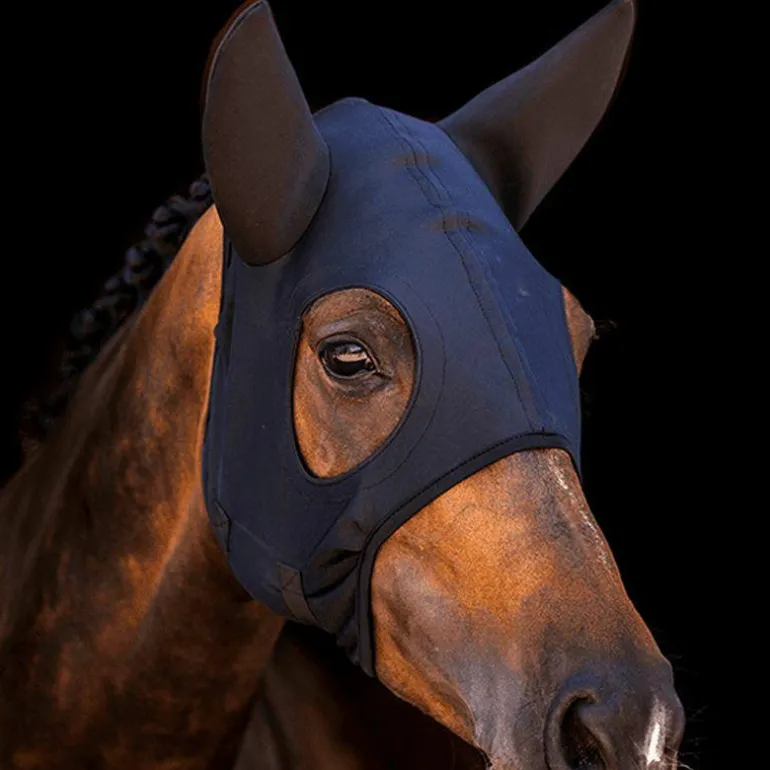 • Le masque est en tissu extensible de titane et vient avec ou sans oreilles, permettant d’alléger la nervosité du cheval pendant la compétition et améliorer sa performance.