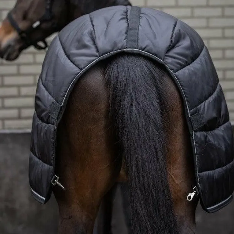 • La couverture se fixe facilement grâce à du velcro au niveau de l’encolure et à l’arrière ce qui assure sa stabilité et son maintien