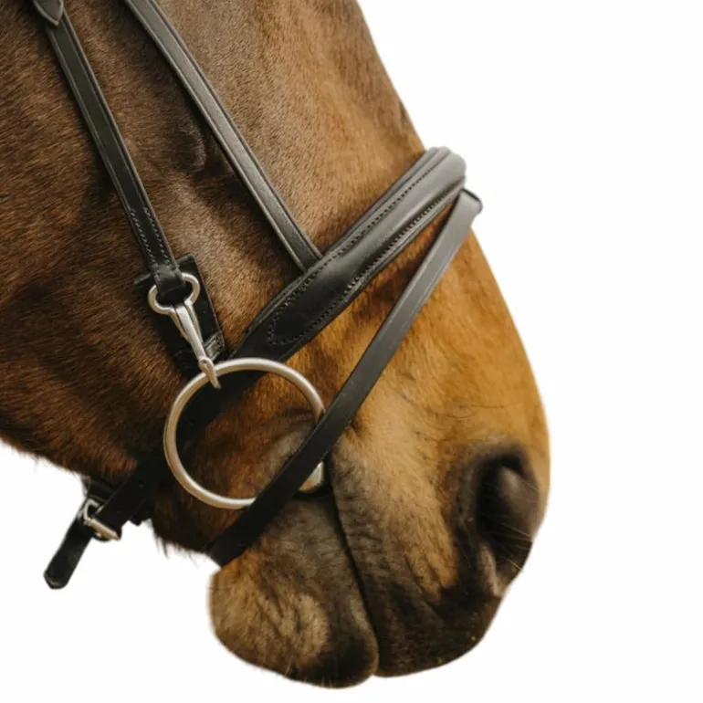 • Têtière et frontal doublés en cuir de vachette permettant plus de confort et de résistance
