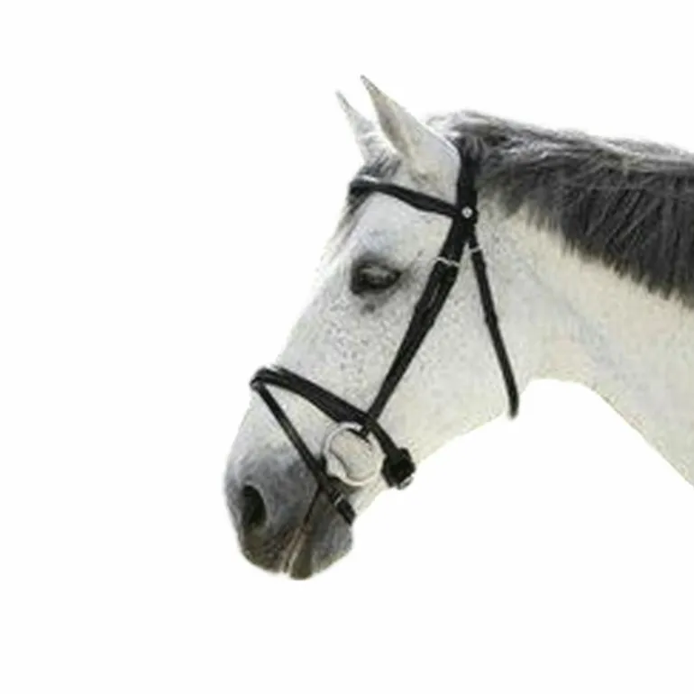 - Bridon en cuir de buffle avec têtière, frontal et muserolle doublés cuir vachette, crochets sur les montants de mors
